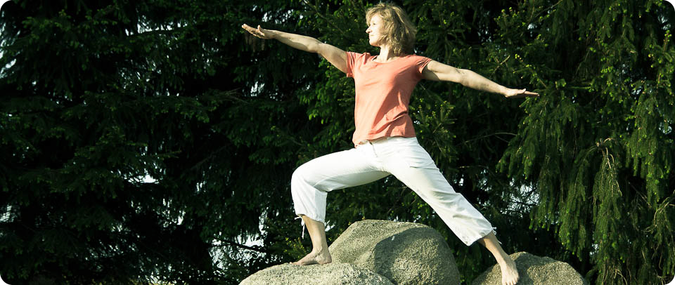 Die Verwendung von Hilfsmitteln (Gurte, Stühle, Klötze, Platten, Kissen etc.) ermöglicht es allen - unabhängig von Alter und Konstitution - Yoga zu üben.